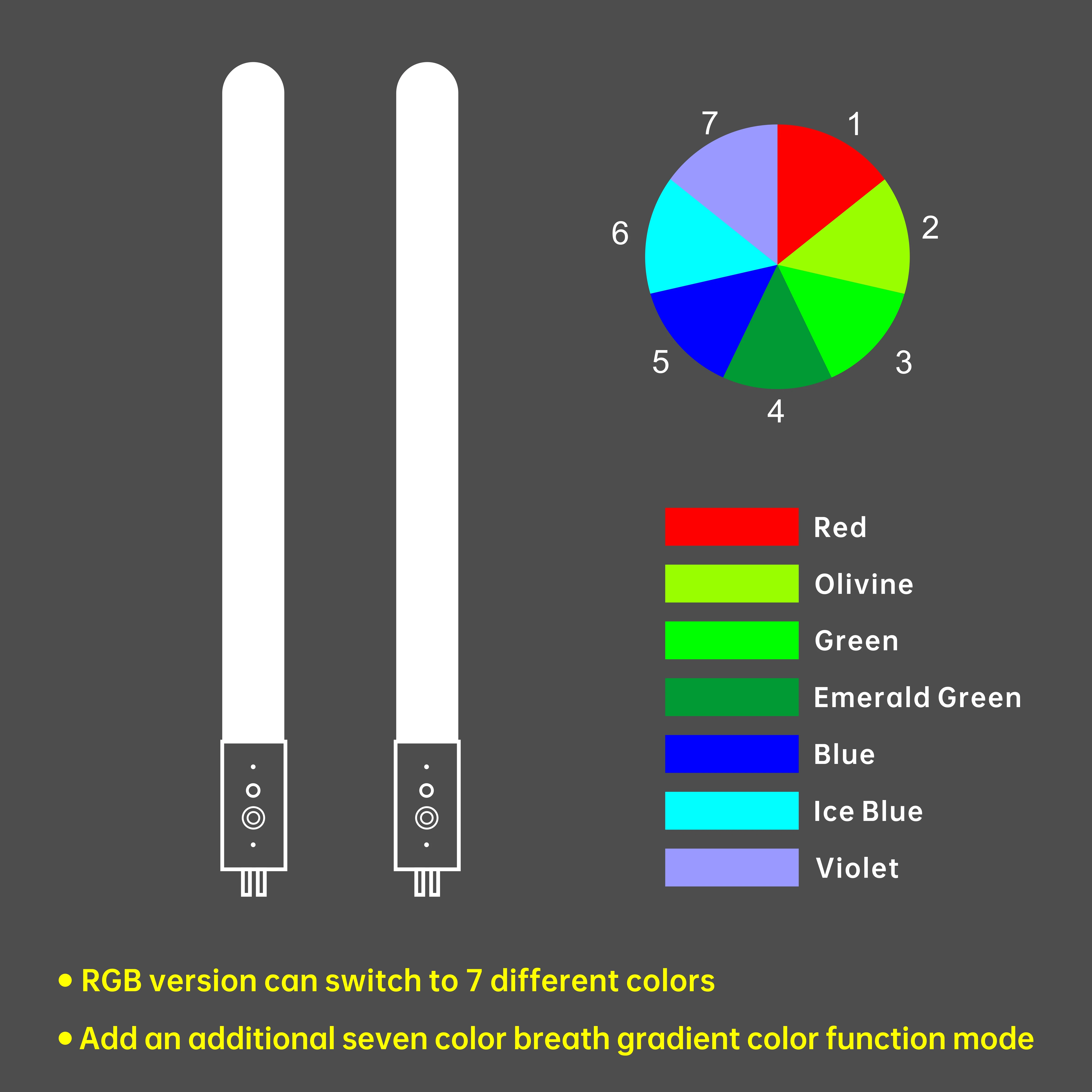 The handle is available in three colors: gold. Silver and black. The color of light is switched with 11 colors. More cool, more variety of colors, please carefully confirm your favorite handle color before buying. If you need any information or assistance, please contact me
