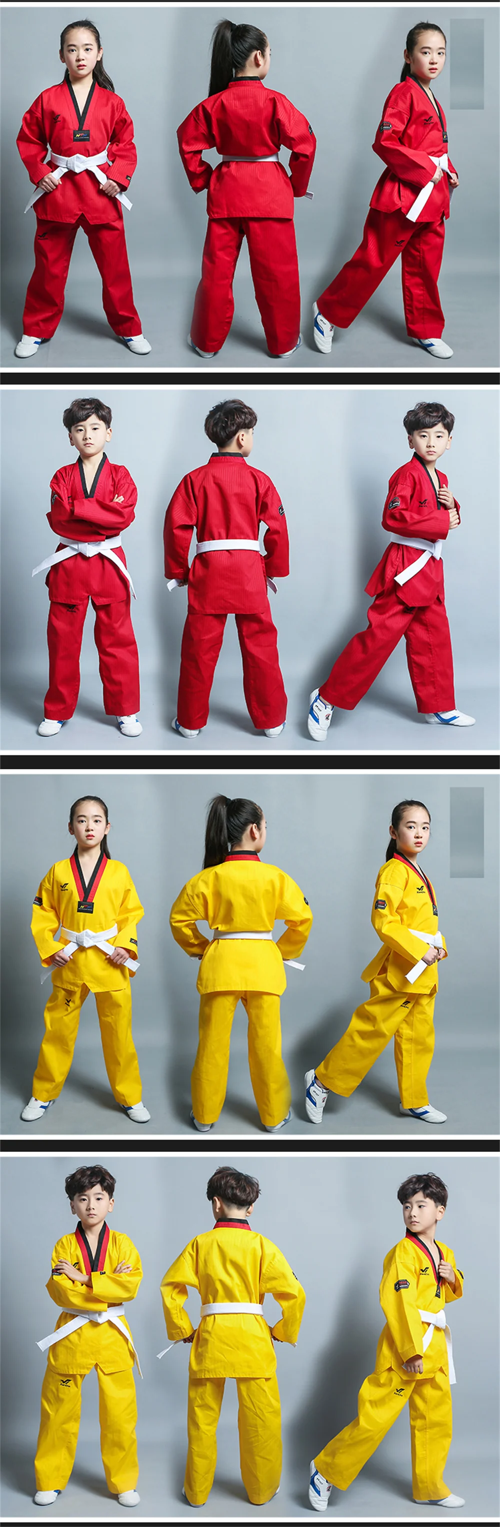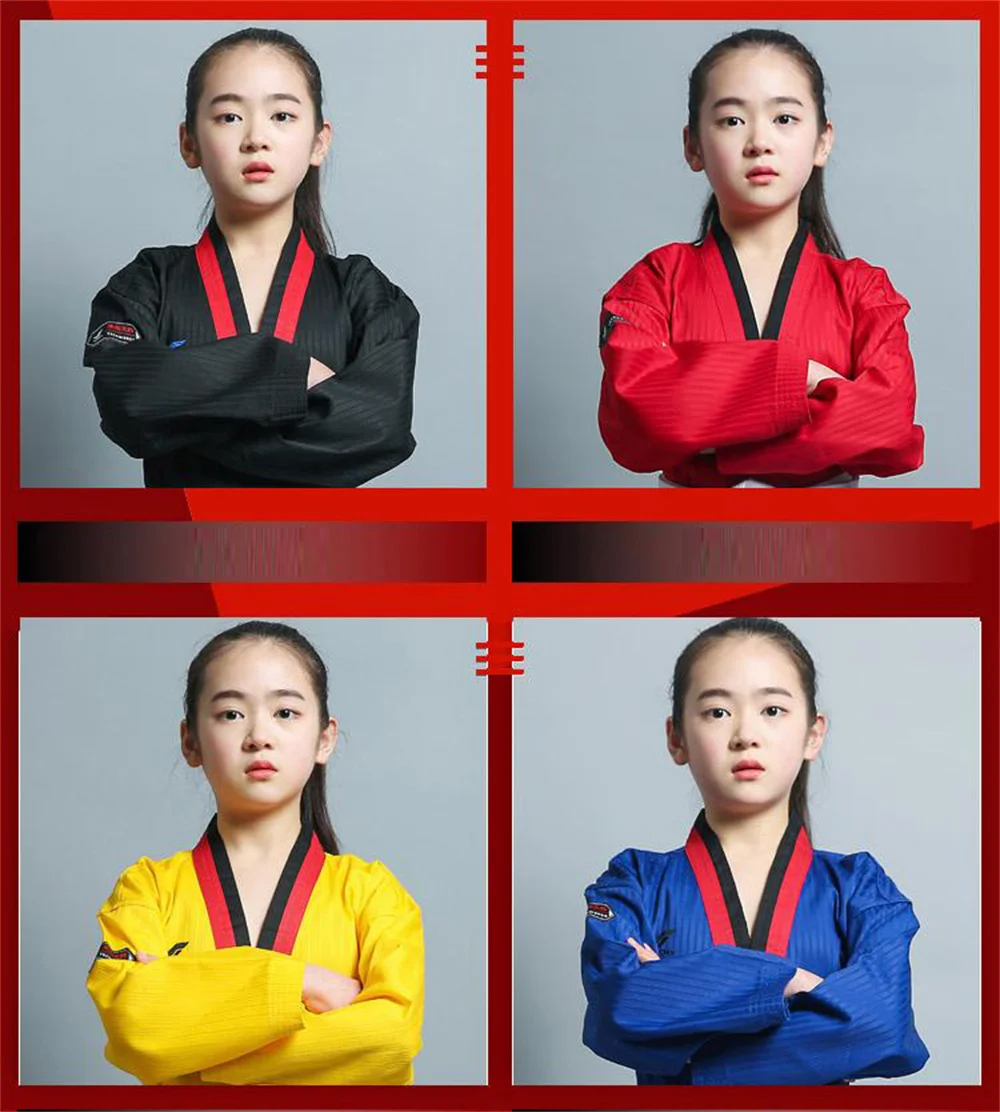 Taekwondo Uniform For Children's And Adult Long-Sleeved Training Suit Performance Dobok Black Red Yellow Pink Green